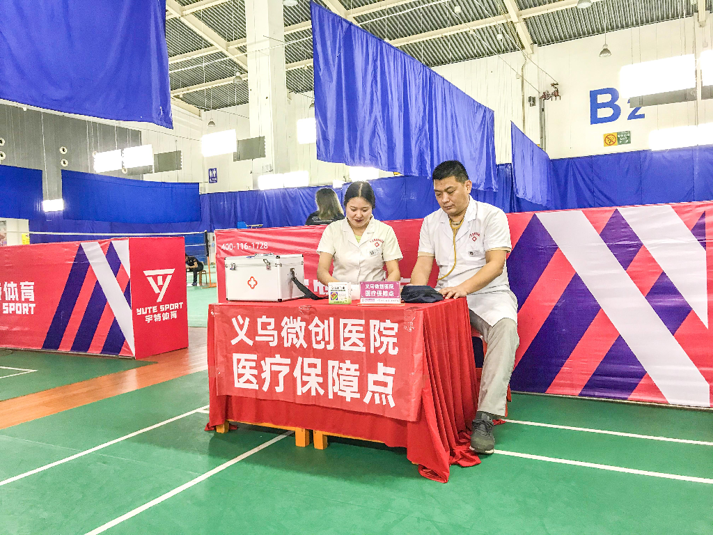 羽毛球比赛是一项高强度的对抗比赛,选手在比赛中容易出现体能透支、肌肉拉伤、意外挫伤等应急状况,义乌附一微创医院有着丰富的比赛医疗保障经验,以严谨、细致的工作作风,最大限度的保障选手的身体健康。